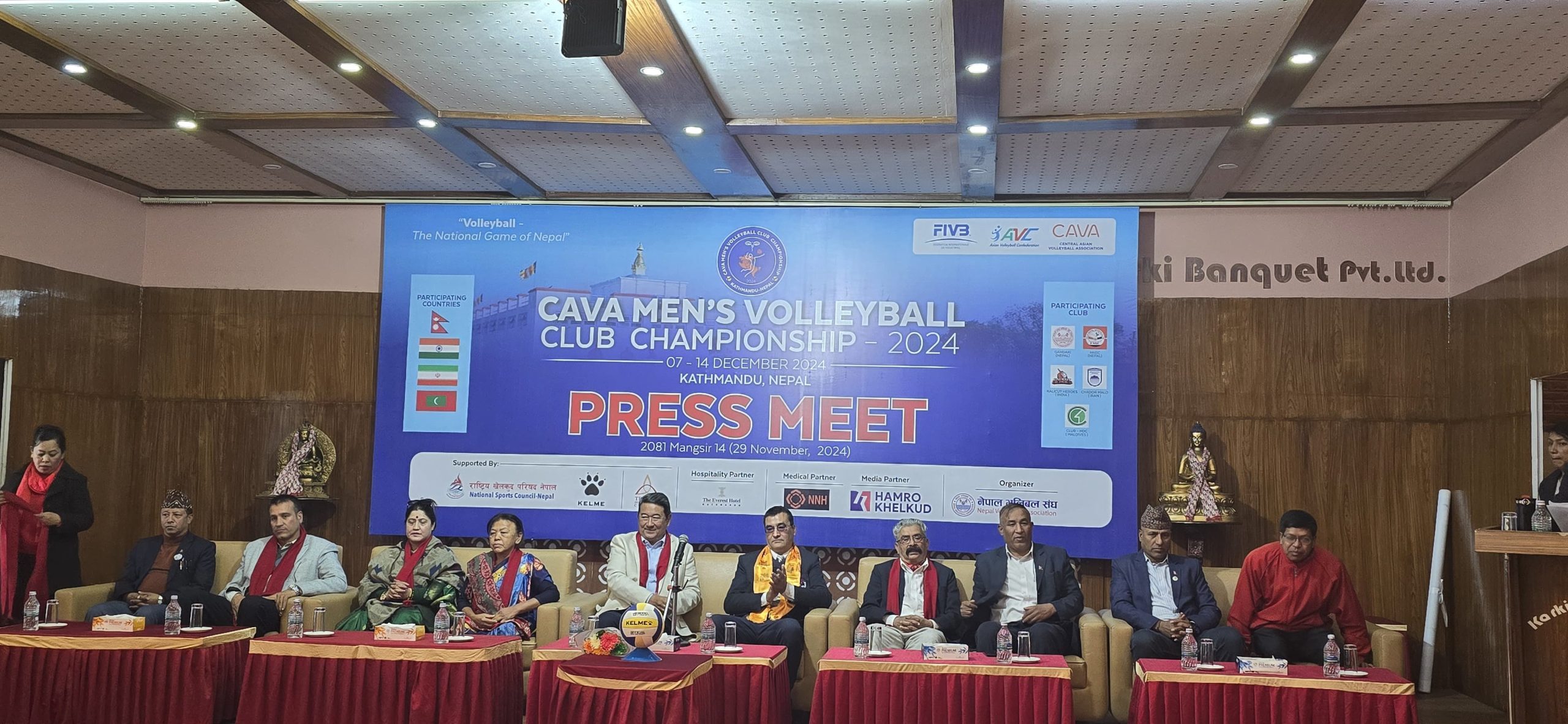 काठमाडौं– नेपाल भलिबल संघको आयोजनामा आगामी मंसिर २२ देखि २९ गतेसम्म CAVA पुरुष भलिबल क्लब च्याम्पियनसिप २०८१ त्रिपुरेश्वरस्थित दशरथ रंगशालाको कभर्ड हलमा आयोजना हुने भएको छ। सेन्ट्रल एसियान भलिबल संघको संयोजनमा हुने यस प्रतियोगितामा नेपाल, इरान, भारत र माल्दिभ्स चार देशका पाँच क्लबहरूको सहभागिता रहनेछ।